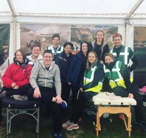 After going through the signing in procedure with our supervisor Kirsty we start at 5.00 and don’t get an opportunity to stop until somewhere between 9 and 10. There is a continual stream of folks, some having finished the event, some having finished for the day with the second half of the event to do the following day, others are continuing throughout the night all looking for some relief from their aching muscles. The treatments vary according to whether the individual is continuing or not and are kept short to keep the waiting times down and we concentrate on the key areas as requested. There is still a steady number of people coming in for a massage and we eventually pack up about 1.00 in the morning. I head off to my tent in a bid to get some rest whilst Michael and Jai head off to one of the other stations to do an overnight shift.